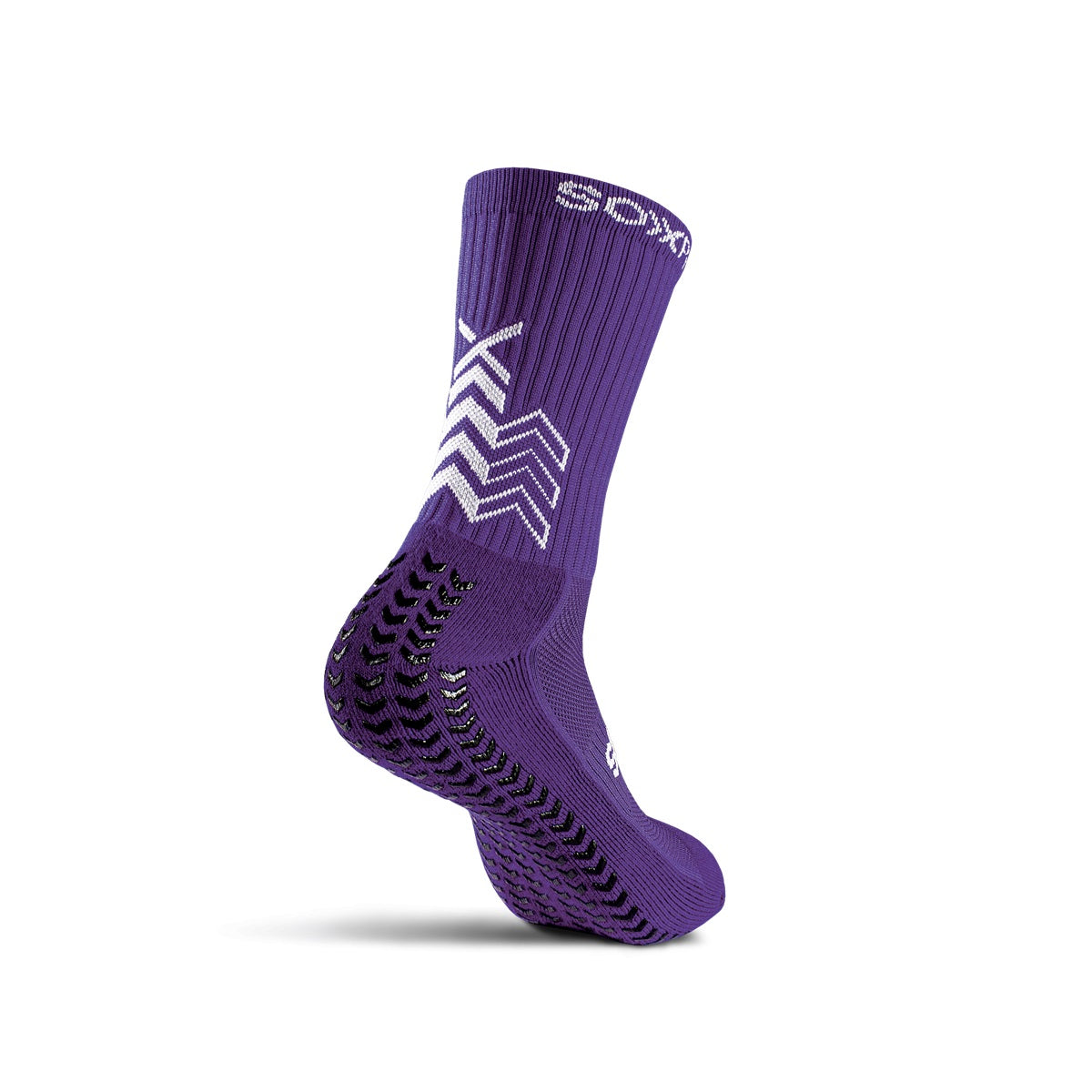 Calza tecnica antiscivolo SOXPro Classic imbottita con altezza a metà polpaccio. I calzini da calcio SOXPro Classic Soccer Grip sono progettati per un supporto durante tutte le tue prestazioni sportive, riducendo l'attrito tra la suola e la scarpa. Queste calze Soxpro sono progettate per offrire la massima trazione all'interno della scarpa, caratterizzate dalla presenza di cuscinetti in silicone antiscivolo a forma di freccia. Le frecce, presenti sulla pianta del piede e nella zona strategica del tallone, generano un'azione Grip:IN che non consente alcuno scivolamento all'interno della scarpa. Questo impedisce i fastidiosi movimenti laterali e verticali che si verificano all'interno della scarpa quando si pratica qualsiasi sport. Grazie all'utilizzo dell'innovativo tessuto DRY FLEX , le calze SOXPro Classic grip sono flessibili e traspiranti. Tessuto che garantisce, oltre alla traspirabilità e alla flessibilità, anche il massimo comfort e ventilazione. Salbini articoli tecnici per lo sport è rivenditore Soxpro .