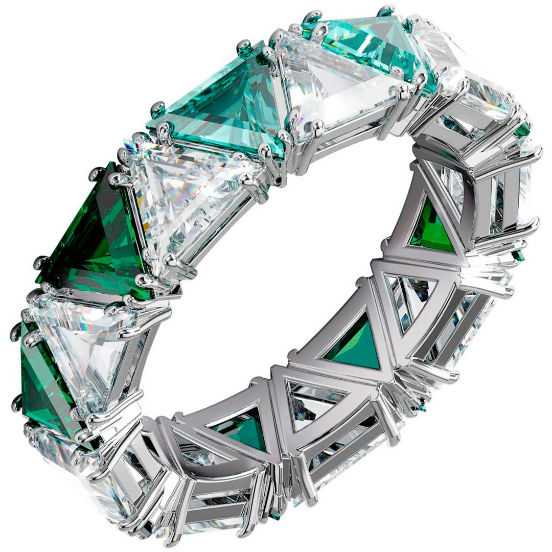 Questo esclusivo anello cocktail è costituito da pietre taglio Triangle a incastro trasparenti e verdi, per un effetto sfavillante. È sia versatile che moderno; indossalo come accessorio singolo da abbinare con un abito informale da giorno, oppure per attribuire un accento di colore prismatico a ogni look da sera. Questo anello fa parte della famiglia Millenia ed è firmato dal Direttore creativo Giovanna Engelbert per la Collection I.