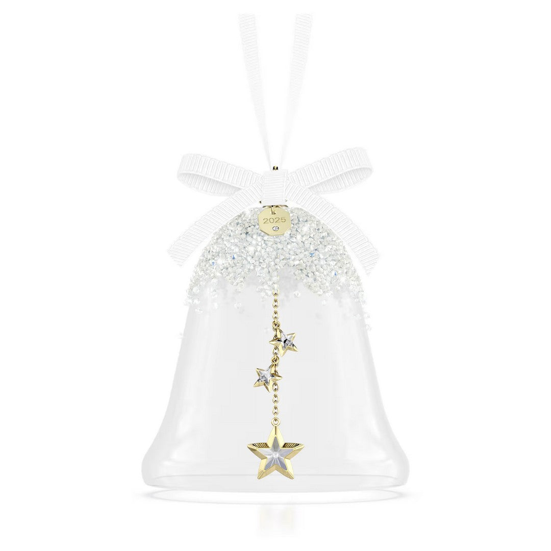 Celebra la stazione delle feste con la Annual Edition Decorazione Campanella Swarovski per il 2025. L'immacolato design in vetro è ricoperto da circa 1.300 cristalli, mentre l'interno contiene un batacchio a forma di stella realizzato con 109 sfaccettature e una finitura in metallo in tonalità oro champagne. La creazione è sospesa ad un nastro in gros-grain bianco con l'incisione 2025 sulla targhetta. Un gioioso mix di delicata bellezza e suono armonioso, perfetto per impreziosire qualsiasi arredamento festivo. Oggetto decorativo. Non è un giocattolo. Non adatto a bambini di età inferiore ai 15 anni.