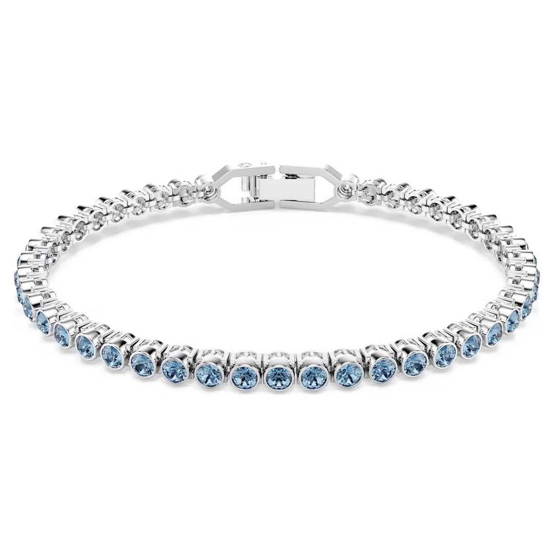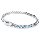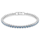 'Un classico bracciale tennis con una luce che parla da sé. Questo delicato filo di cristalli blu con montatura a castone su un bracciale tennis placcato rodio è elegante e minimalista, ma allo stesso tempo rappresenta un audace statement al polso. Il design colorato presenta un comodo fermaglio di sicurezza ed è dotato di un extender. Indossalo per accentuare il tuo stile in qualsiasi momento del giorno o della sera.