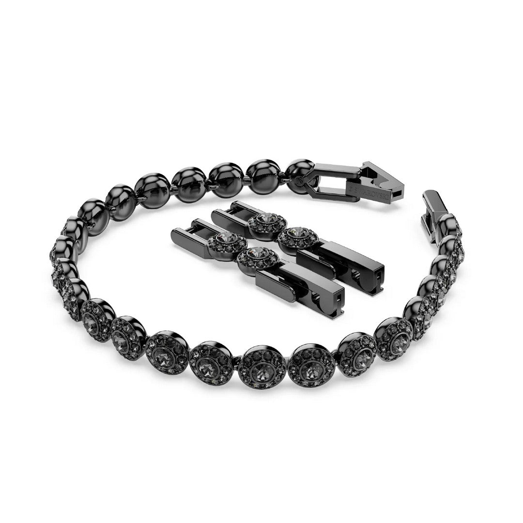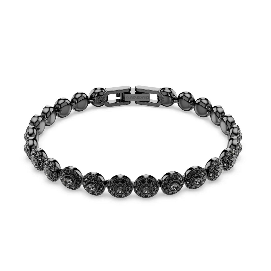 Bracciale tennis della collezione Swarovski Una Angelic da donna. Colore: Nero. Il gioiello è realizzato in lega di metalli anallergica placcata in rutenio e presenta una fila uniforme di Swarovski Zirconia di colore nero. Lunghezza regolabile da 17 cm a 22,2 cm con chiusura a clip. Dedicato a chi ama indossare gioielli maestosi caratterizzati da una raffinatezza spettacolare.