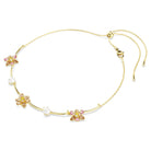 Natura e lusso si fondono in questa delicata e al contempo straordinaria collana Idyllia. Su una catena regolabile, il design all-around presenta barrette placcate in tonalità oro, intervallate da Crystal Pearls Swarovski e tre fiori, ciascuno realizzato con cristalli di vari tagli e colori tenui. Un tocco di gioiosa eleganza, perfetto da abbinare a un bracciale, una spilla o degli orecchini coordinati.