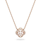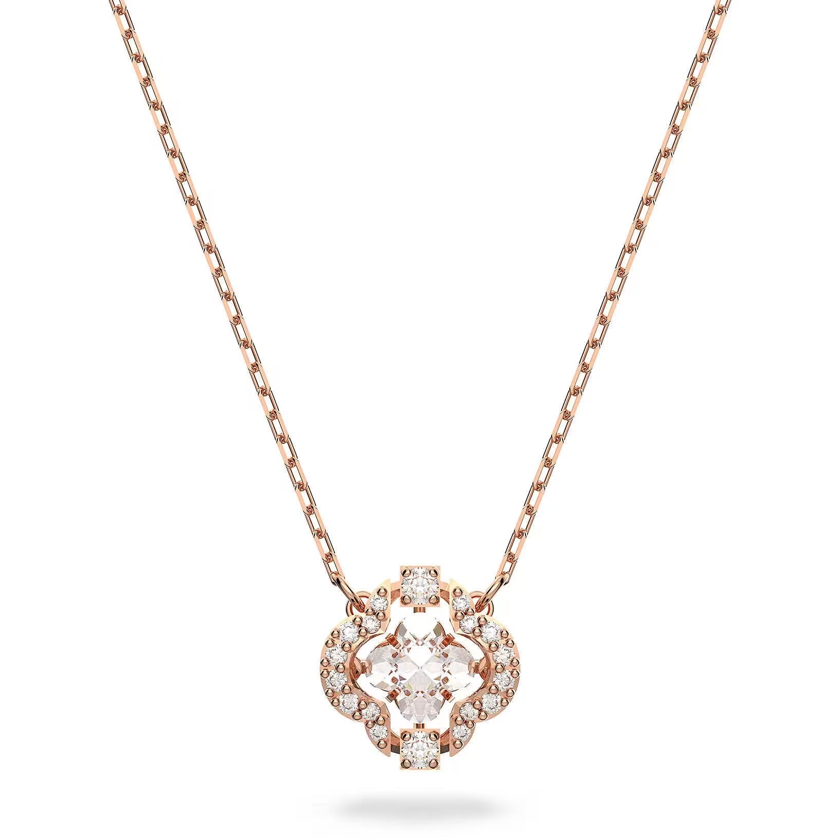 Collana da donna di Swarovski della collezione sparkling dc. Collana di colore oro rosa con cristalli bianchi. Assicurati che la fortuna sia sempre dalla tua parte con questa elegante collana. Presenta una brillante pietra trasparente a forma di quadrifoglio che "danza" nella montatura, ed è rifinita con una catena placcata color oro rosa. Impreziosisci il tuo look con questo gioiello e accarezza la fortuna. Lunghezza minima: 38 cm. Lunghezza massima: 42 cm. Larghezza: 1. 1 cm. La referenza è 5642928