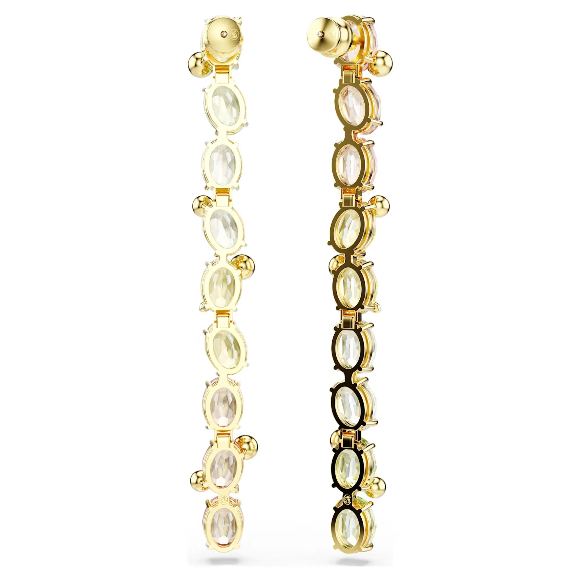 Accendi i colori del tuo stile con questi vivaci orecchini a buco. Ciascuna creazione placcata in tonalità oro presenta un lungo filo di grandi cristalli in molteplici tonalità, accanto a cristalli più piccoli con una gioiosa montatura a griffe a bolle. Giocosi, inaspettati e pronti per affrontare la giornata, questi orecchini a cascata possono essere abbinati a un pendente o a un bracciale Gema per un look ultra-gioioso.