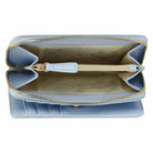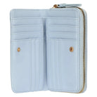 Questo portafoglio da donna in ecopelle azzurro, di dimensioni medie, unisce praticità ed eleganza. Offre ampio spazio per carte, banconote e monete, mantenendo un design compatto e funzionale. Il colore azzurro aggiunge un tocco di freschezza, rendendolo perfetto per chi cerca un accessorio sofisticato e ideale per l'uso quotidiano. Con la sua forma versatile, si adatta facilmente alla tua borsa, combinando ordine e stile in un unico, pratico accessorio.