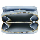 Questo portafoglio da donna in ecopelle azzurro, di dimensioni compatte, è la scelta ideale per chi cerca praticità senza rinunciare allo stile. Nonostante le sue dimensioni contenute, offre un buon spazio per carte, banconote e monete, mantenendo un design semplice ed elegante. Il colore azzurro dona un tocco di freschezza, rendendolo perfetto per l'uso quotidiano. Facile da riporre in borse di dimensioni contenute, è l'accessorio ideale per chi desidera un portafoglio che combini ordine, funzionalità e un tocco di raffinatezza.