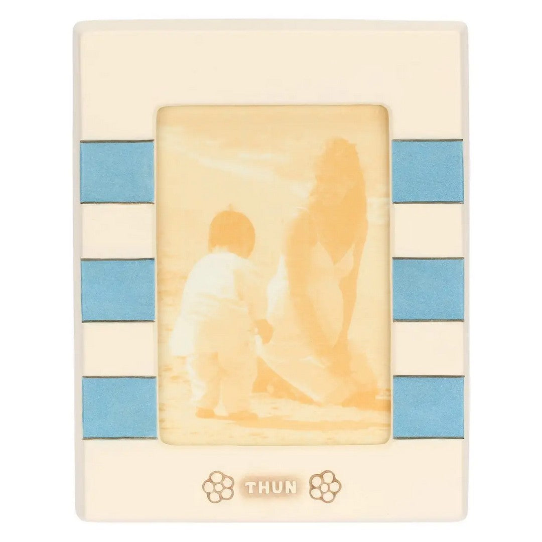 Aggiungi un tocco di eleganza e colore ai tuoi ricordi con questo raffinato portafoto in cerami con un delicato motivo a righe nei toni dell'azzurro è perfetto per donare freschezza e stile a qualsiasi ambiente. Ideale per custodire le tue foto più care, questo portafoto di medie dimensioni si adatta facilmente a mensole, scrivanie o comodini, diventando un complemento d'arredo dal design semplice ma d'effetto in perfetto stile THUN.