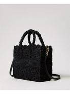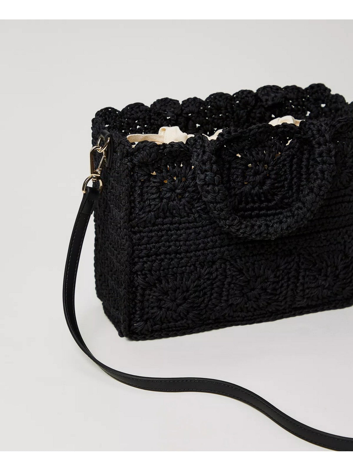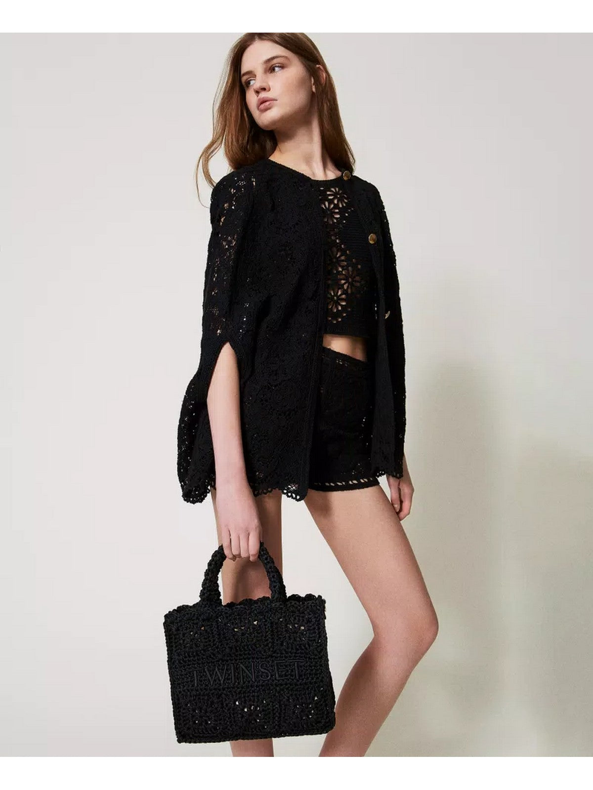 Borsa shopper TWINSET ?Bohémienne' in crochet di cotone intrecciata a mano con logo ricamato in tono al centro davanti.