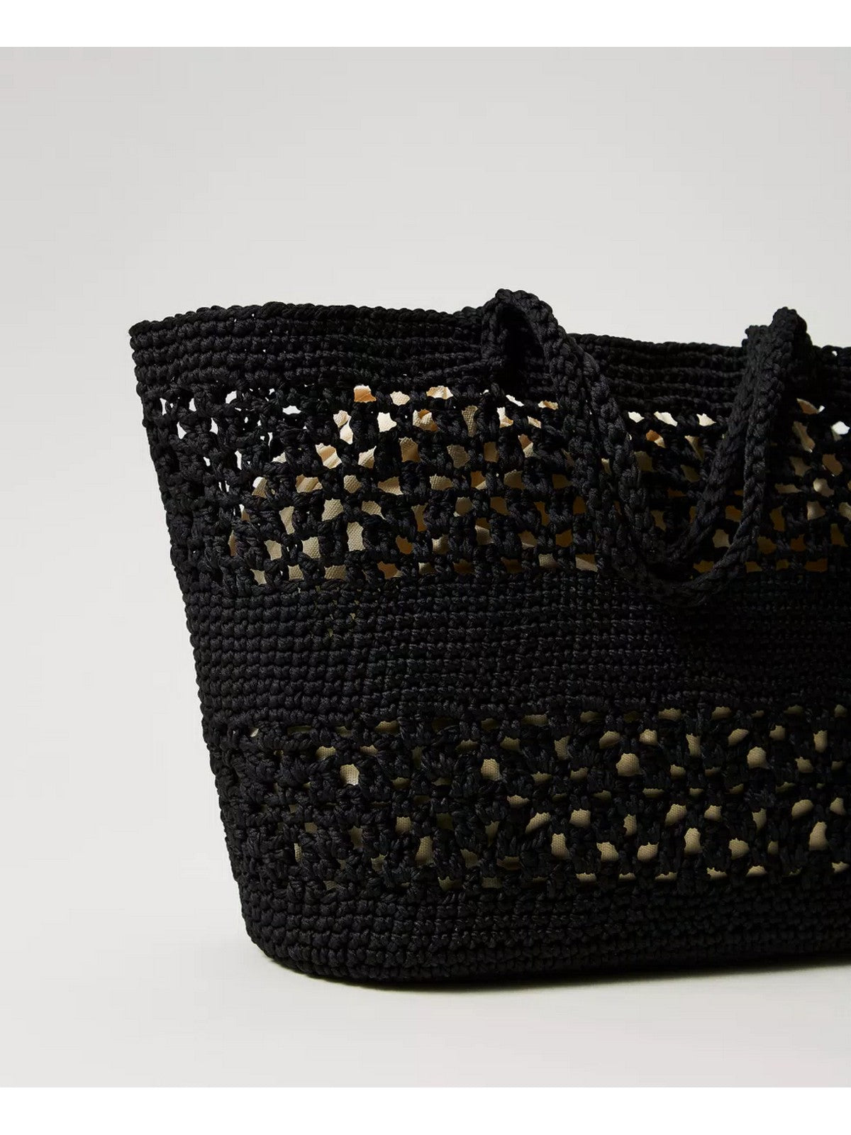 Borsa shopper TWINSET ?Bohemienne' con lavorazione crochet realizzata a mano su forma di legno