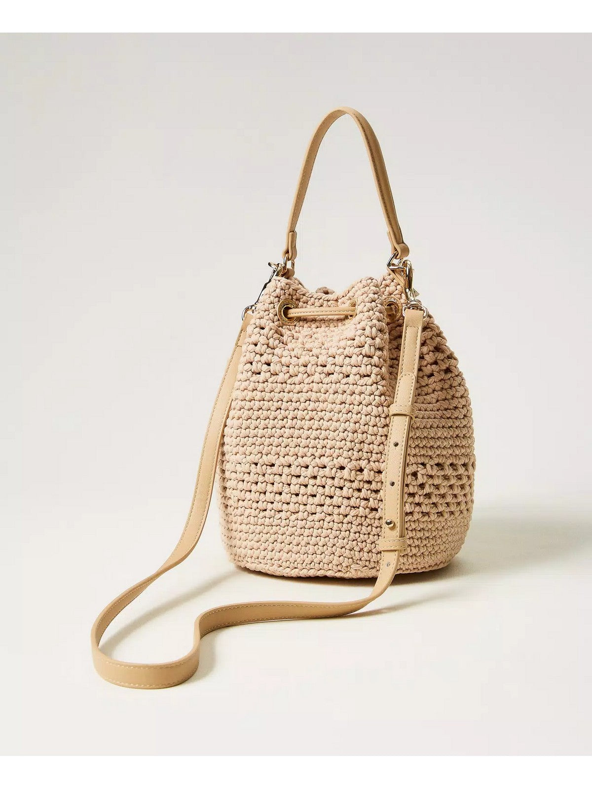 Borsa a secchiello TWINSET in cotone con lavorazione crochet realizzata a mano su forma di legno