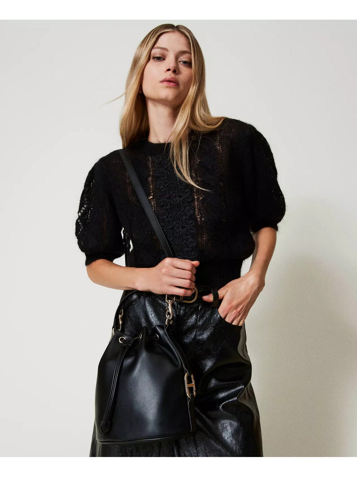 Borsa a secchiello TWINSET effetto pelle di vitello morbida con leggera grana naturale