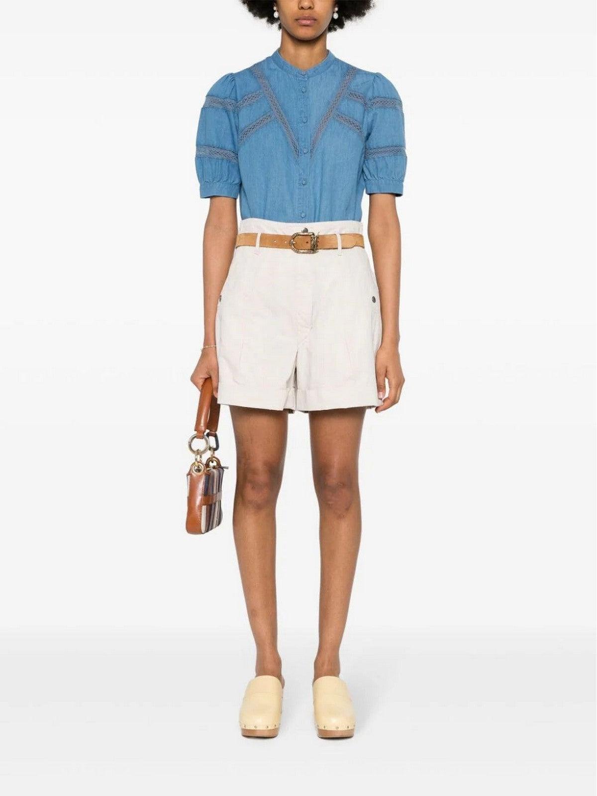 Camicia TWINSET realizzata in cotone. Inserti in pizzo su maniche e petto. Collo a giro e maniche corte a sbuffo. Chiusura centrale con bottoni tono su tono. Logo in metallo sul retro.