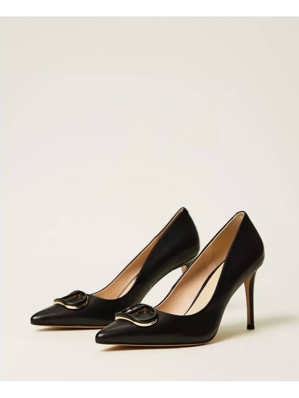 Décolleté TWINSET in pelle con Oval T smaltato in tono