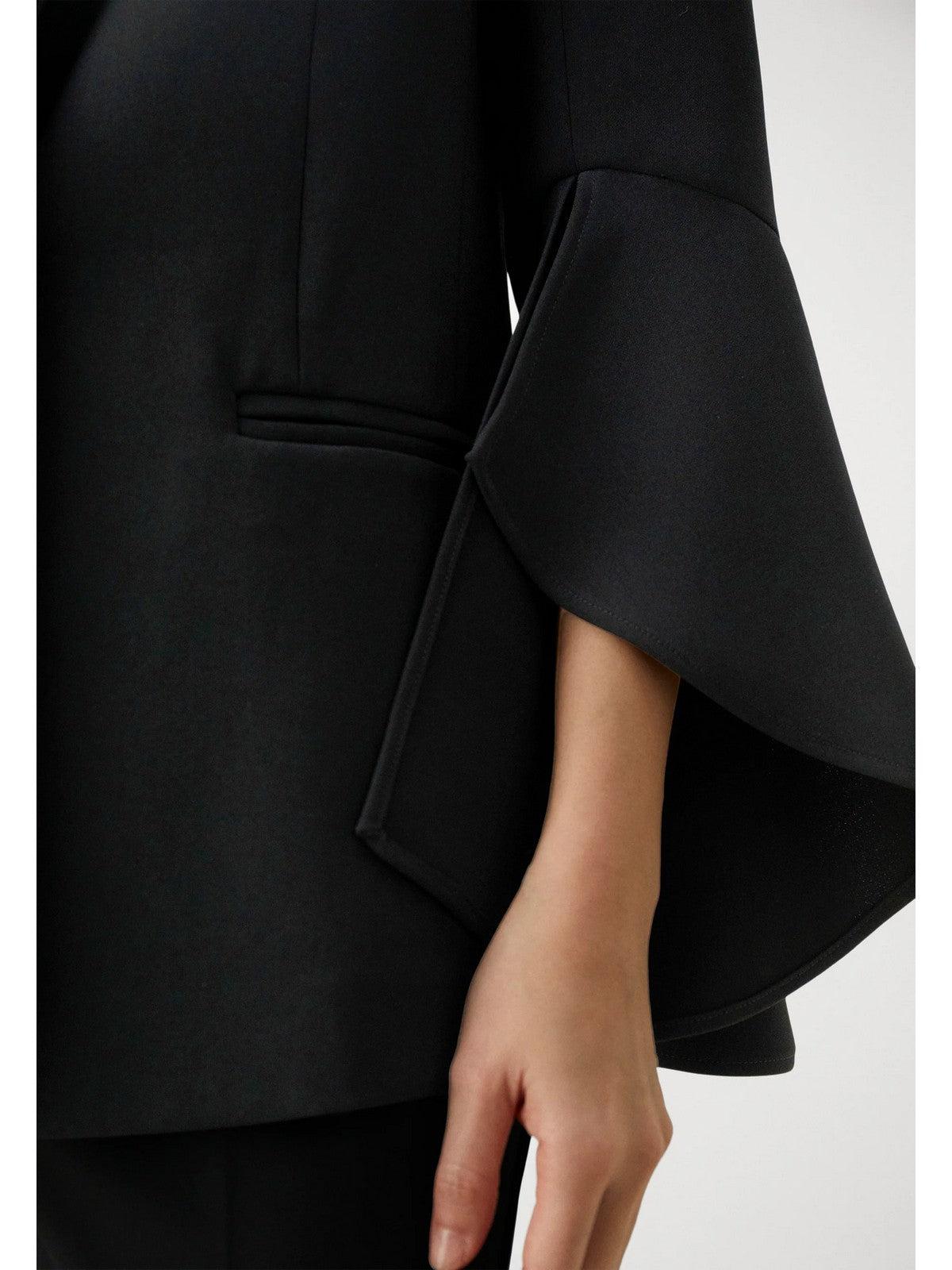 Giacca blazer TWINSET in crêpe cady. Collo con revers a lancia, maniche lunghe con balze in sbieco al fondo. Chiusura monopetto con bottone.