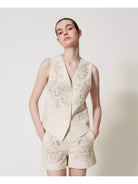 Gilet TWINSET in tessuto a navetta con armatura tela in lino e viscosa, dalla mano fluida.