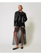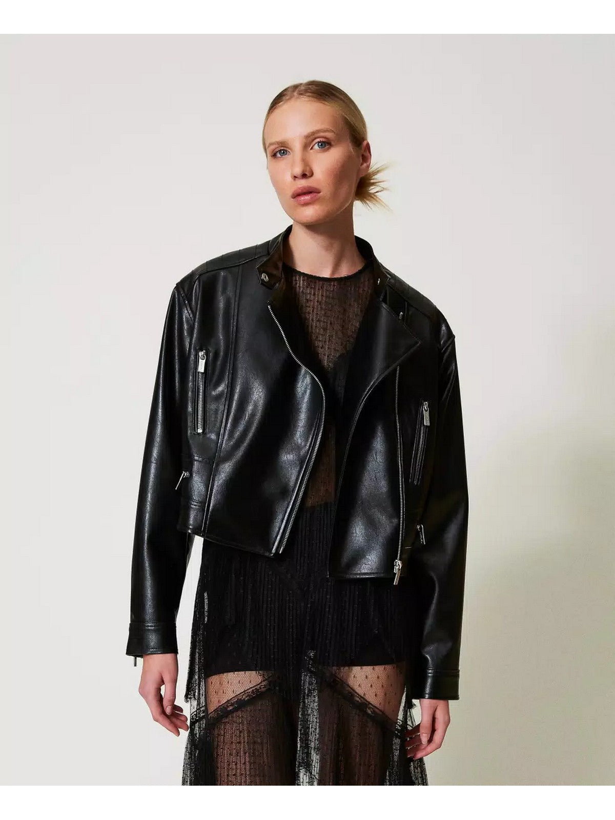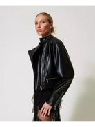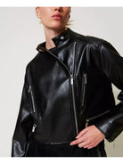 Giacca modello biker TWINSET effetto pelle morbida con zip logate