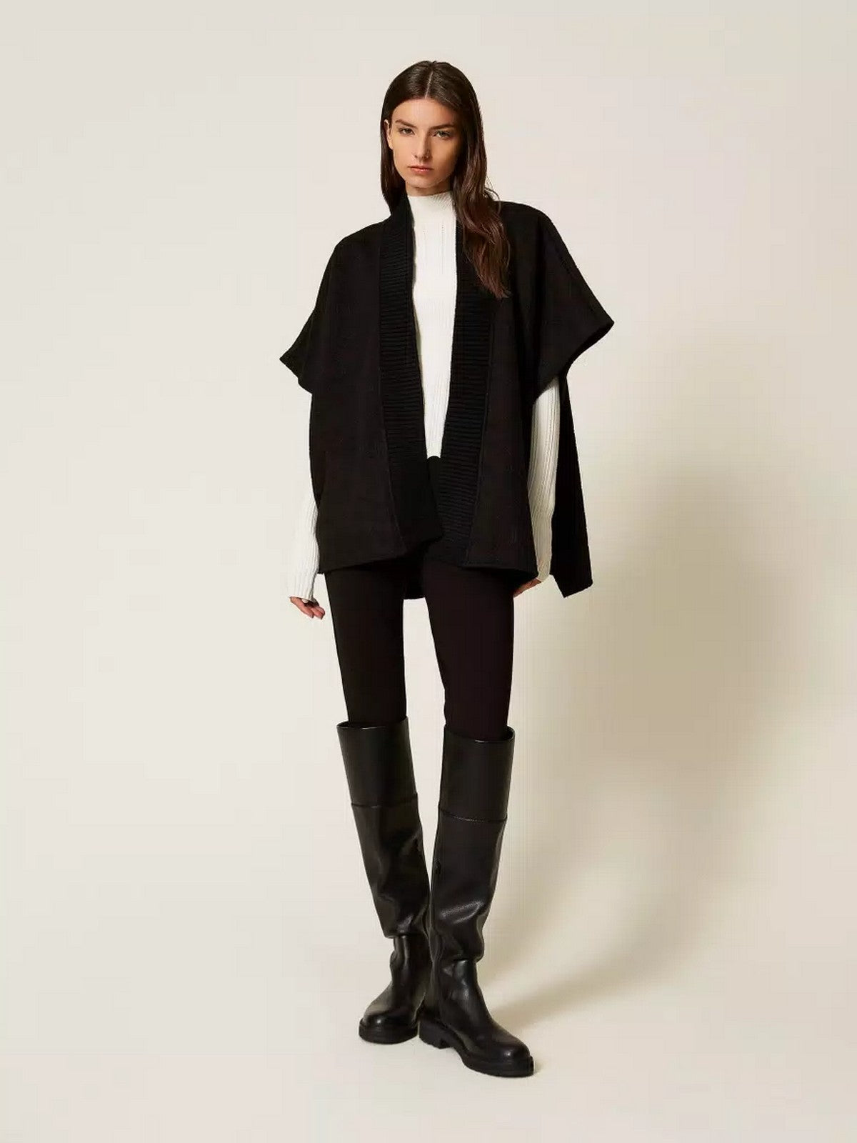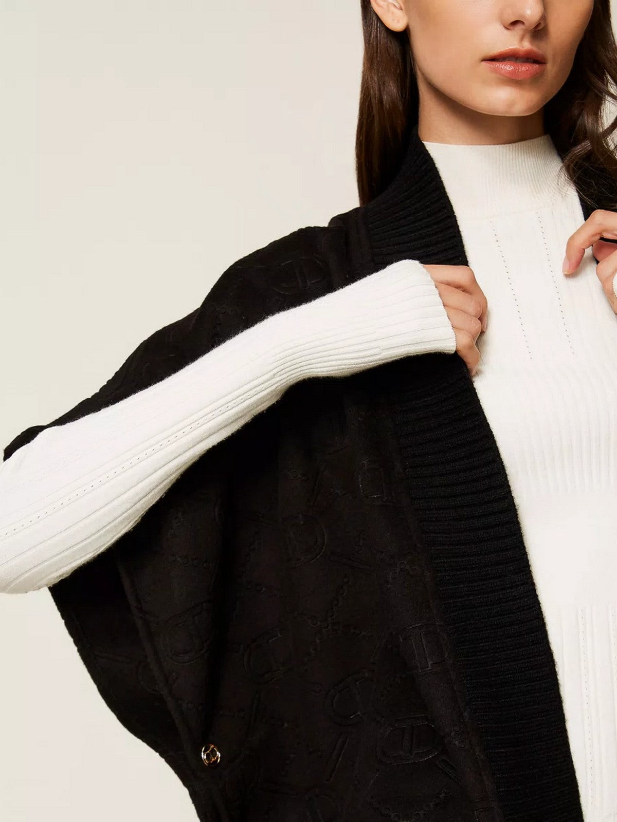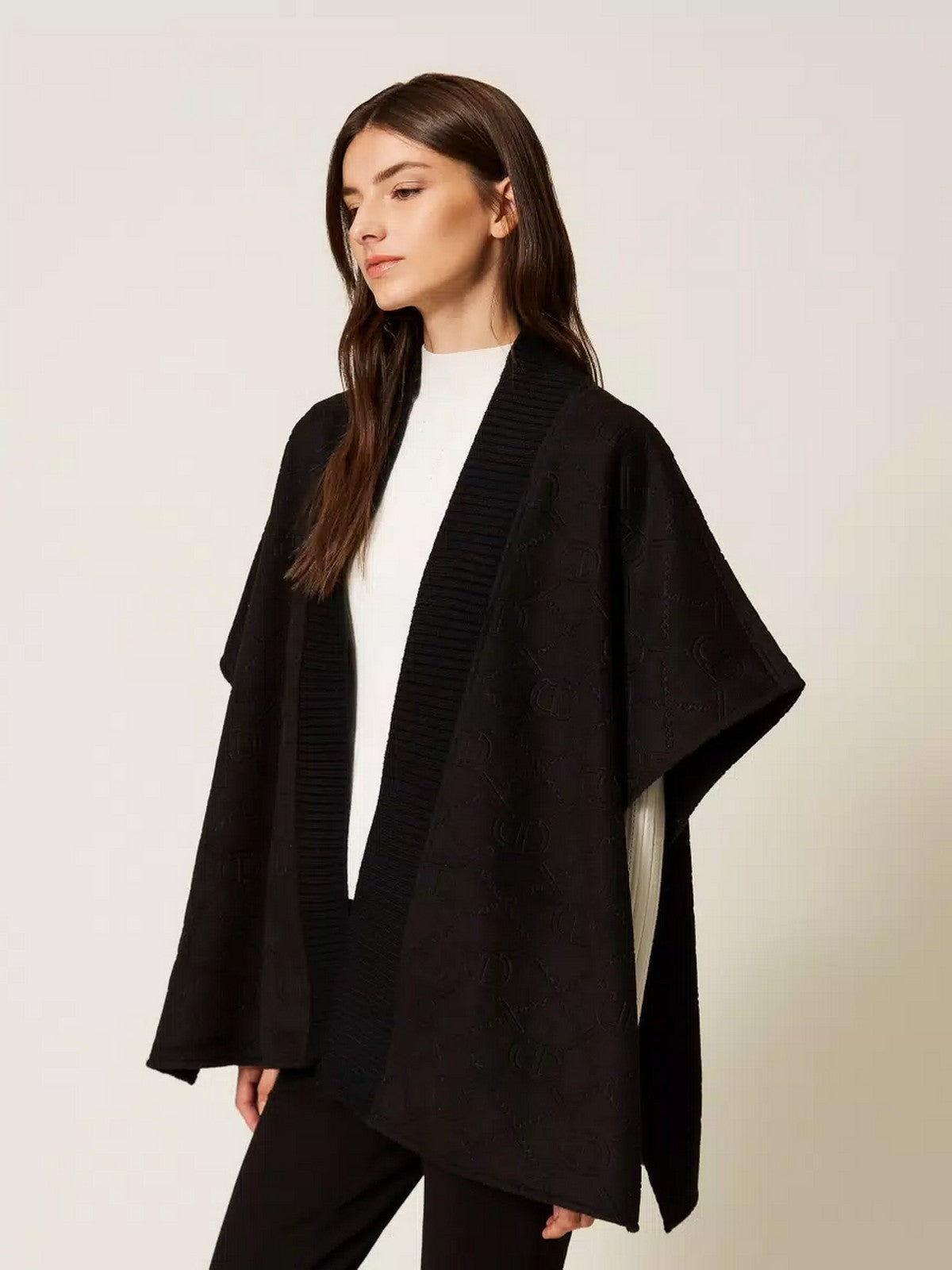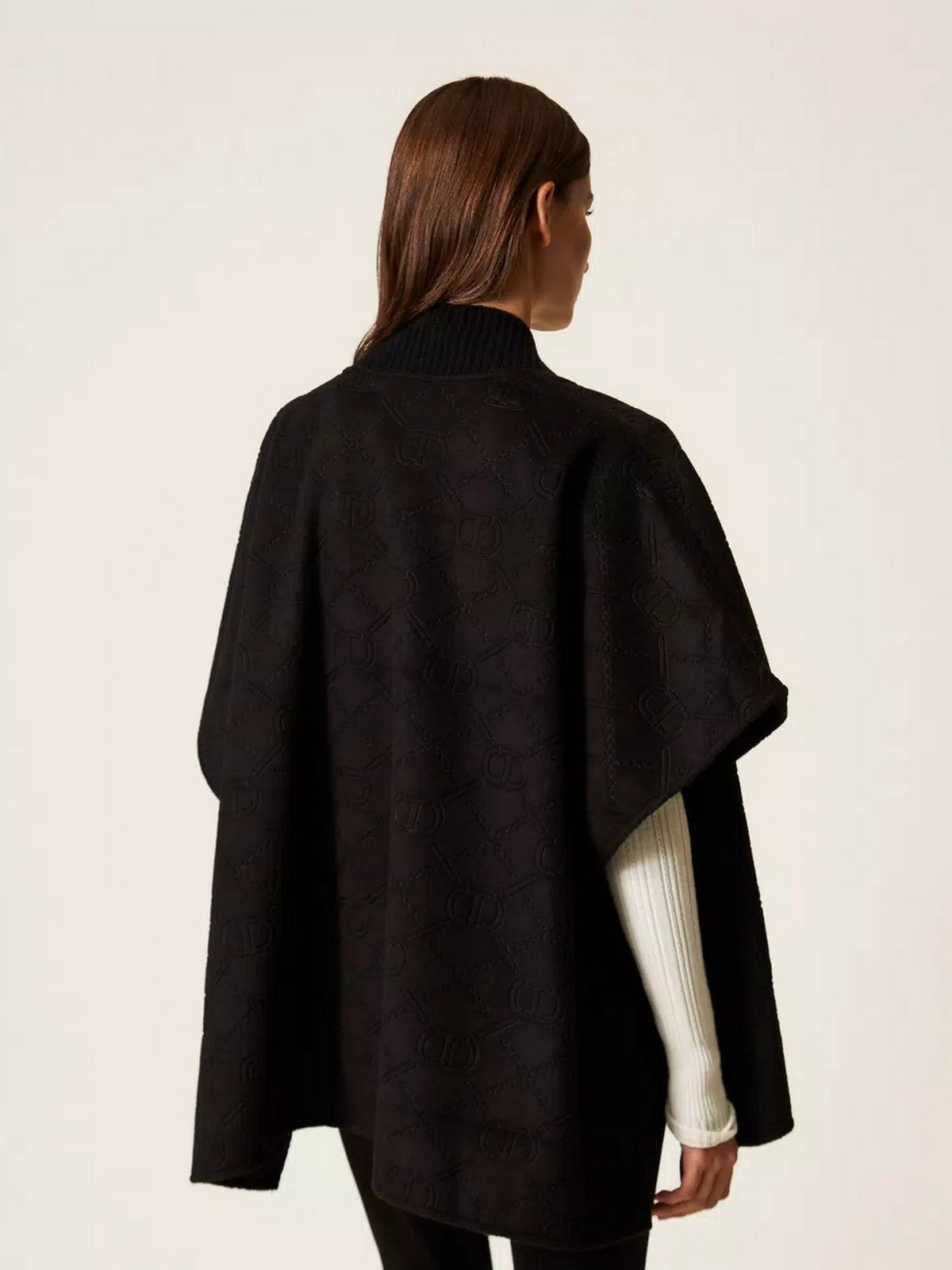 Poncho TWINSET in panno con logo Oval T embossed all ove