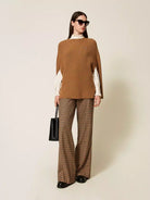 Maglia a mantella TWINSET in misto lana e viscosa con spilla logo rimovibile. Ha lavorazione a punto pannocchia.