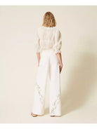 Pantaloni TWINSET in bull di cotone con ricamo floreale traforato piazzato davanti