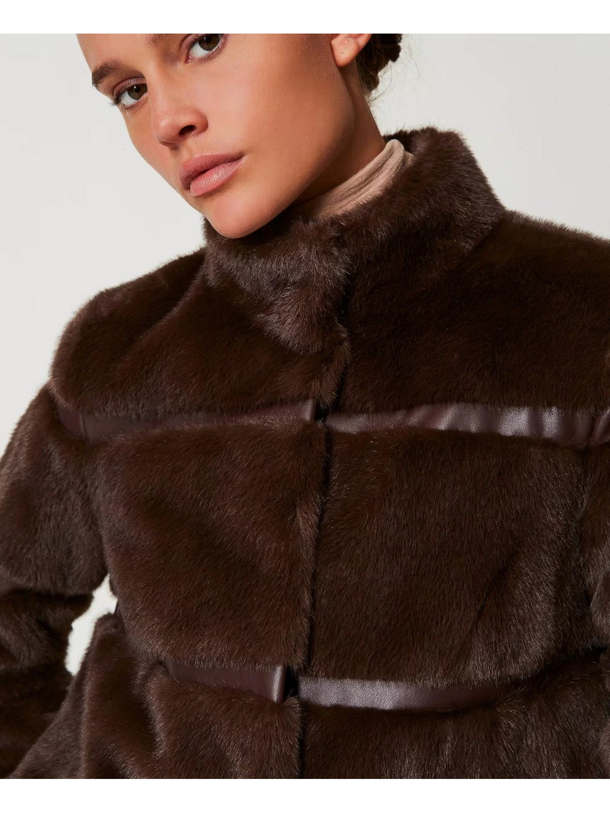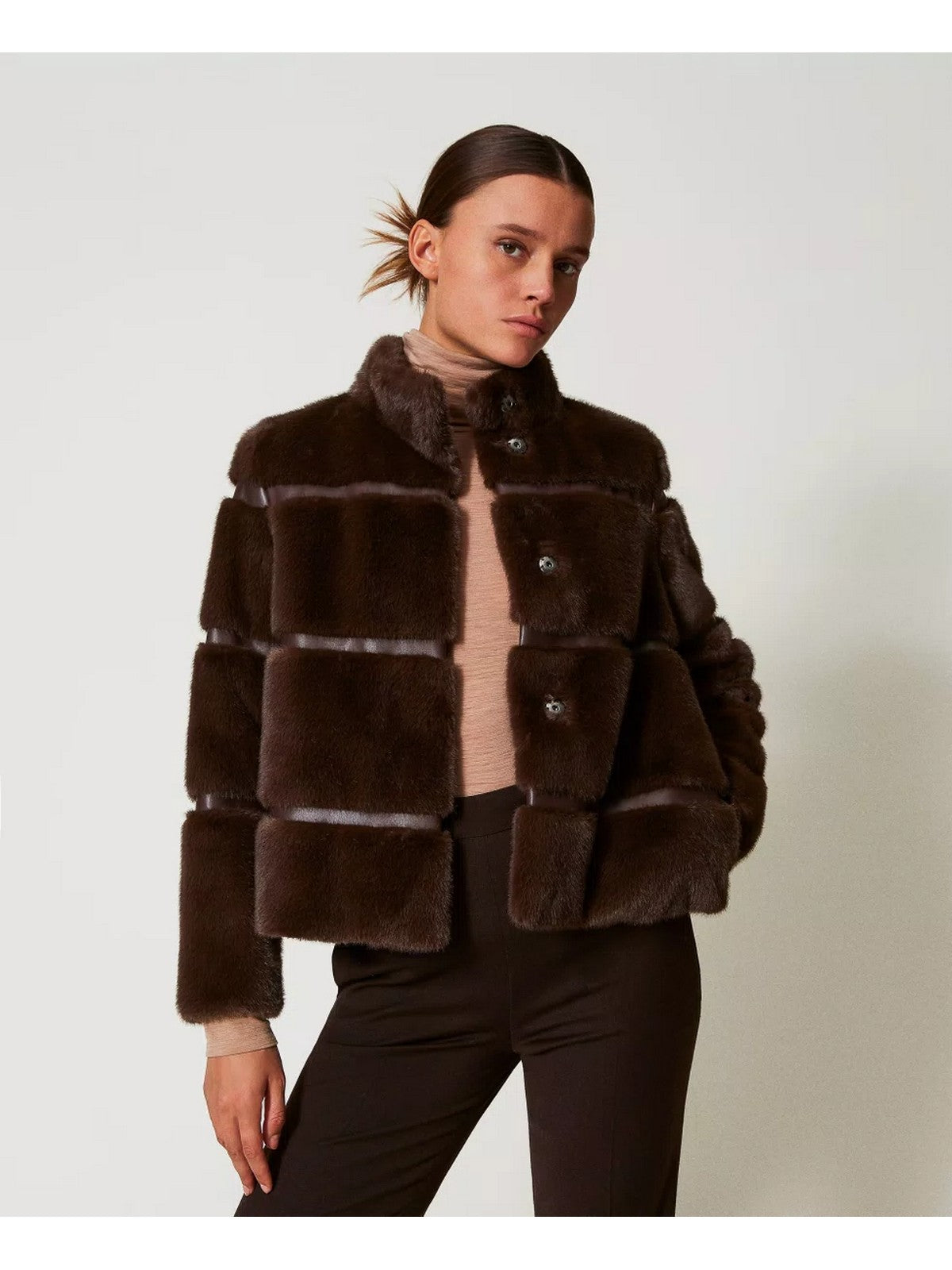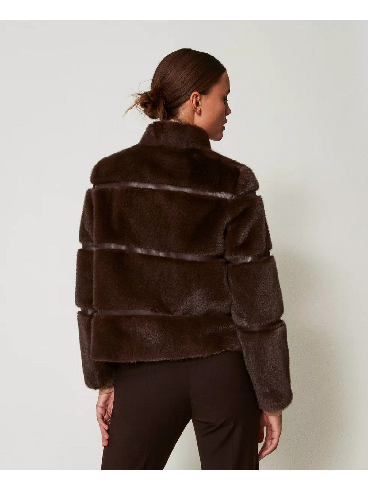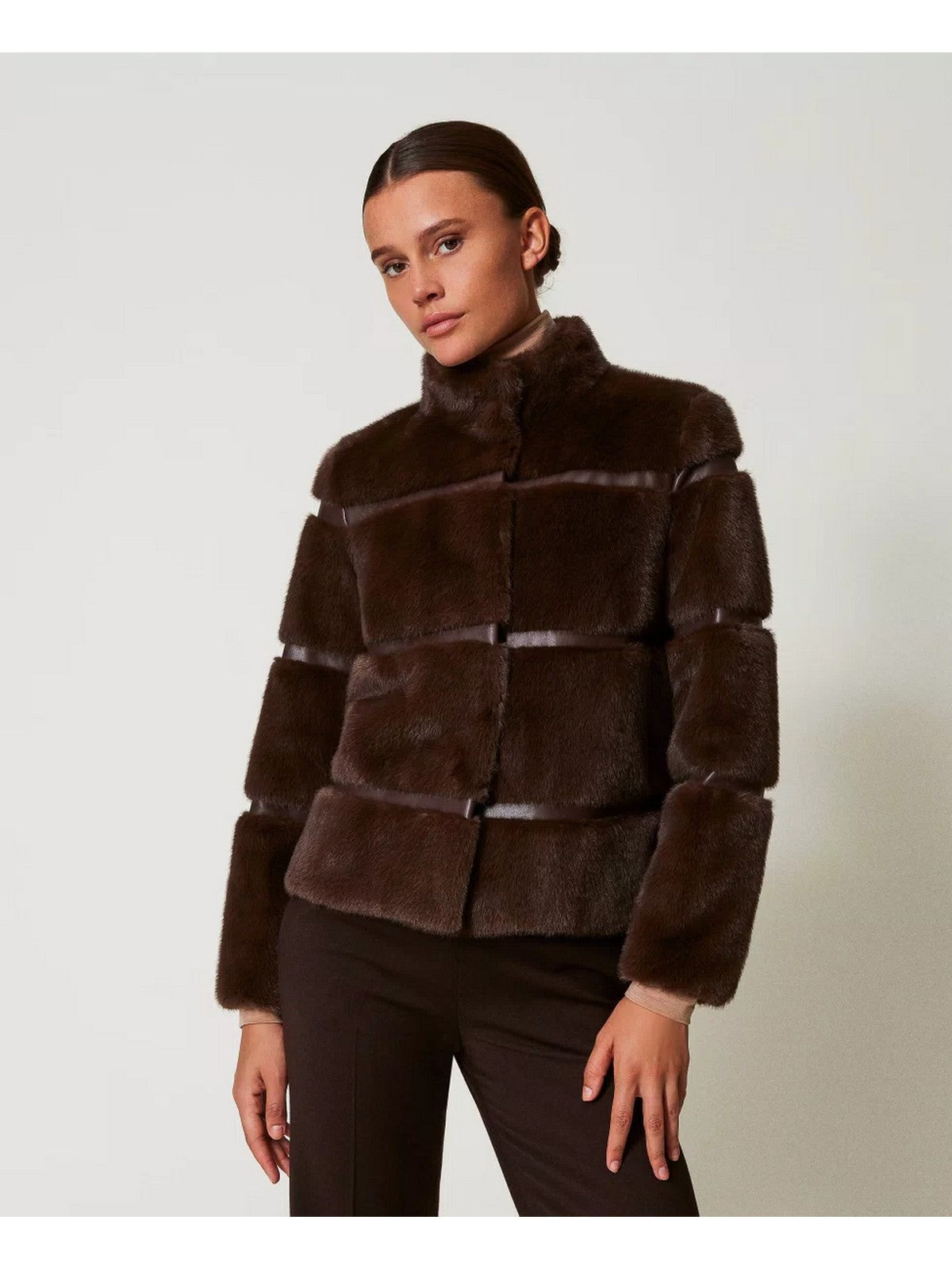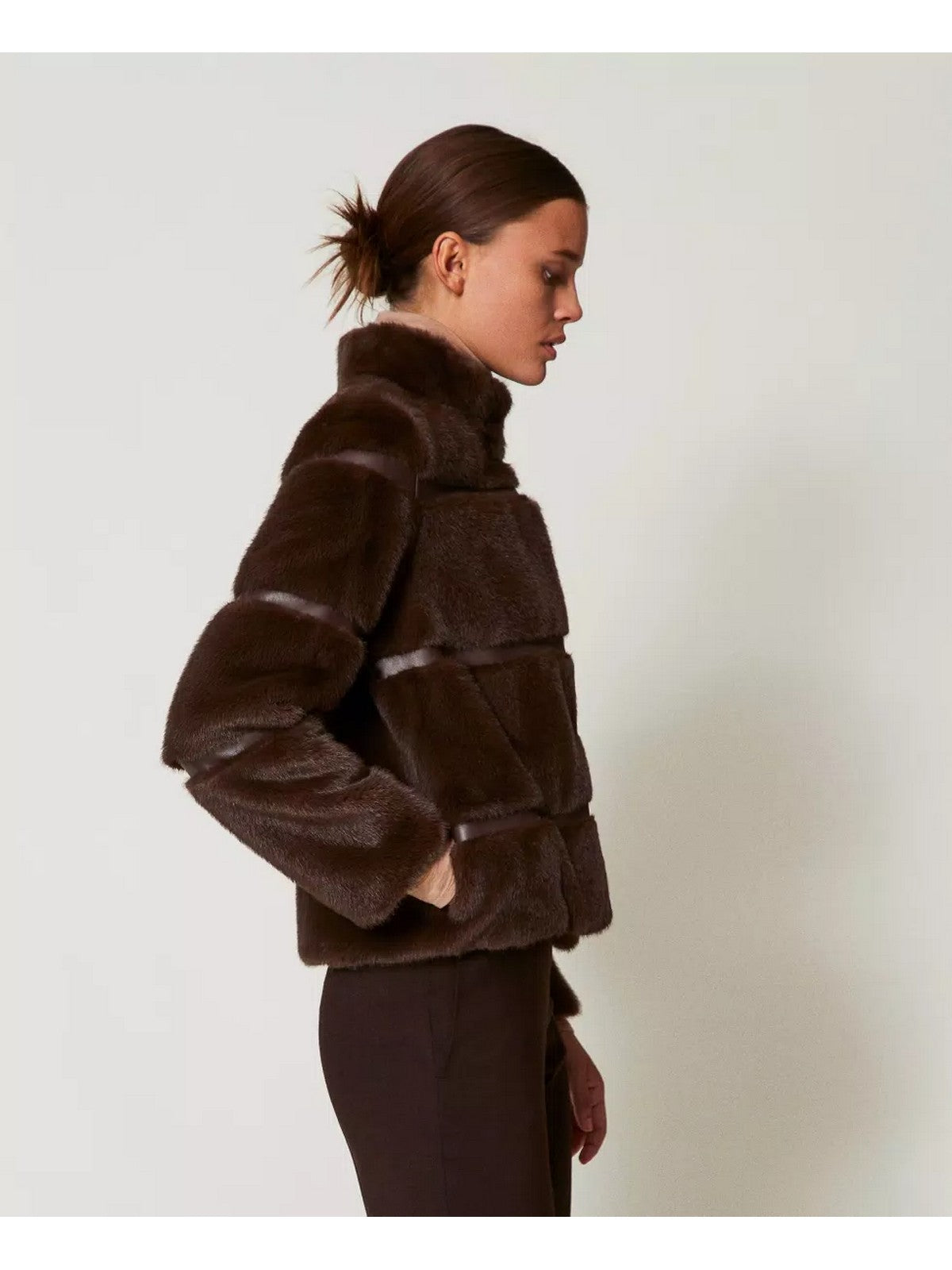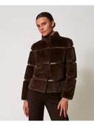 Cappotto corto TWINSET in pelliccia sintetica, Coffee Chocolate.
