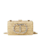 Clutch TWINSET in paglia intrecciata a mano con logo Oval T in strass crystal di varie forme