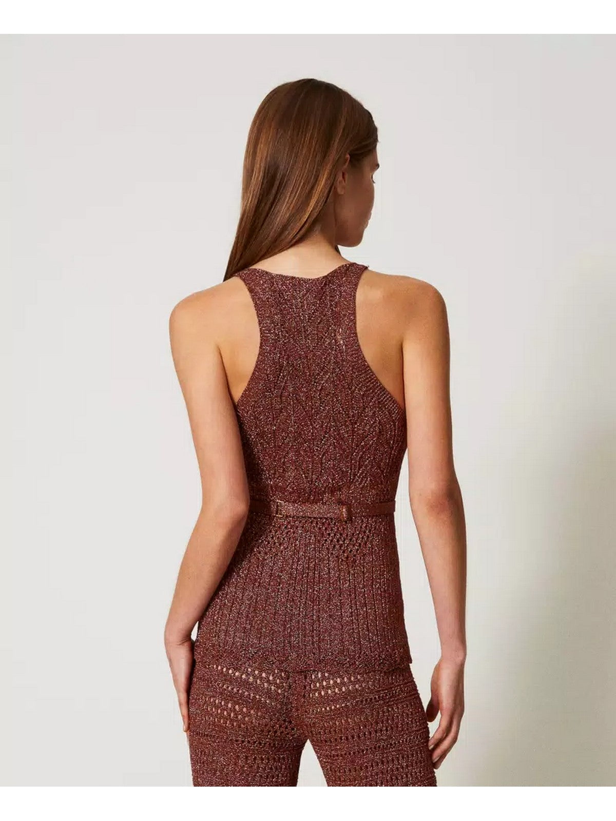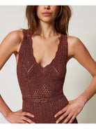 Top TWINSET in maglia di misto viscosa lurex con lavorazione punzonata che crea disegni geometrici.